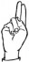 На ћирилици написано ШАЛЕ ВИРИЈЕВИЋ састоји се из 13 слова [?]. Исписано ћириличном једноручном азбуком за глувонеме: